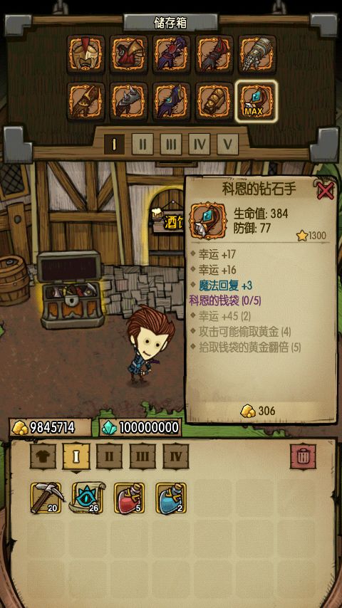 还有个钱袋套装以及开膛手套装,钱袋套装不用解释,幸运强化到max估计能堆到200到300,攒钱爆装备专用,开膛手套装的属性看不太明白,貌似专堆火属性元素攻击,这个有待验证。