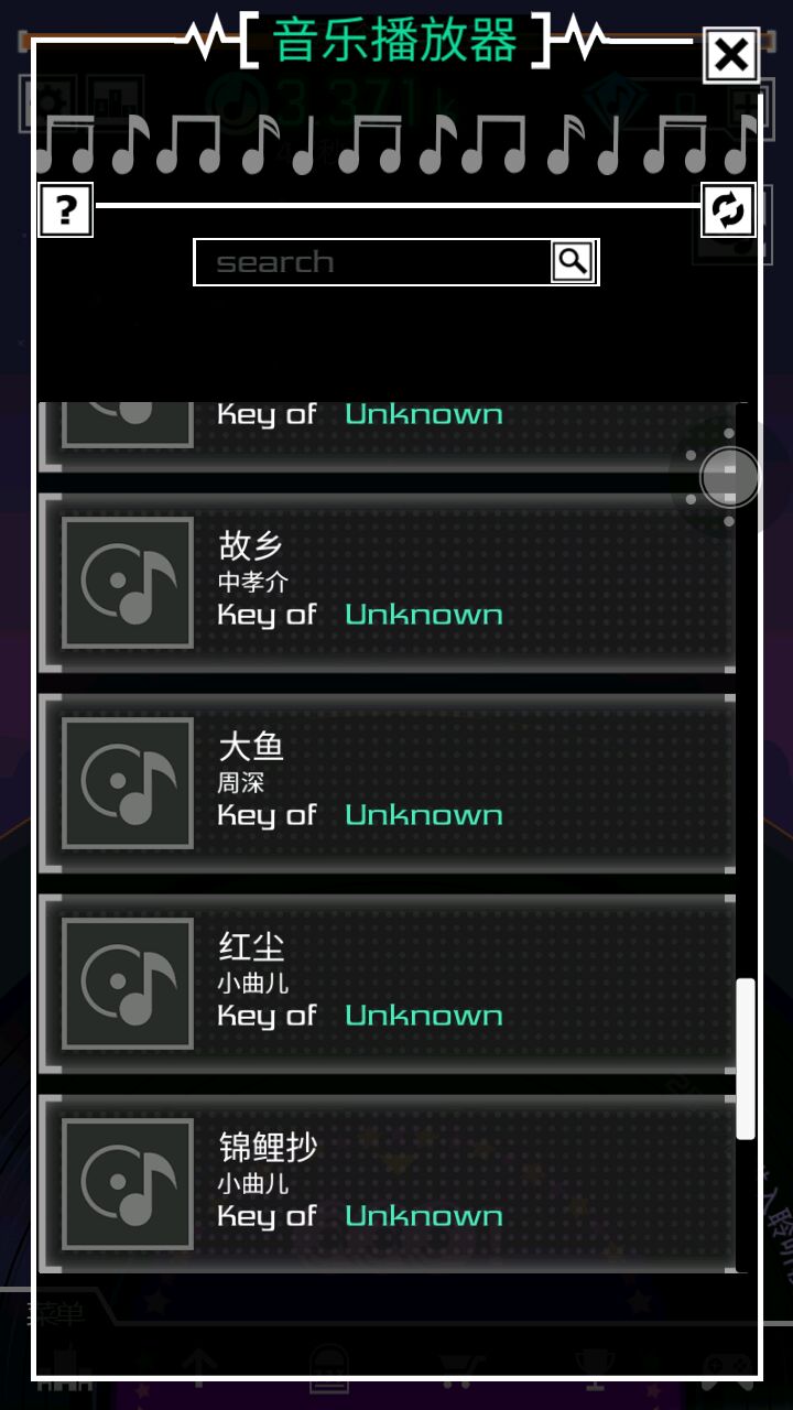 游戏的最上方是游戏任务的进度。然后,是游戏的设置,排名(需要Twitter账号),右面是钻石数据(刚上手,钻石的数量应该是根据完成的任务增加的),钻石的下方是游戏内的歌曲(见续)。
