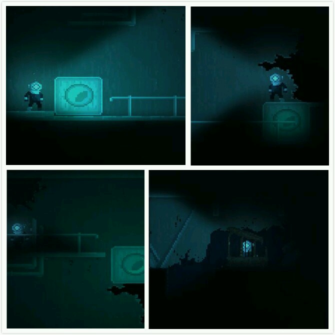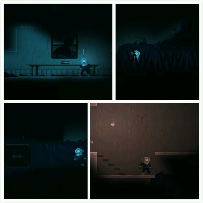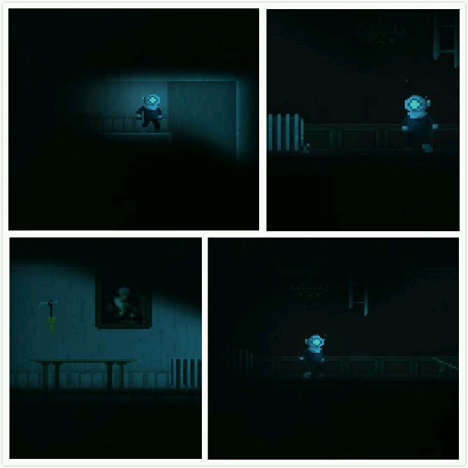 一直向左,爬楼梯下去,不要直接跳下去,在图二所示的位置,双击开灯,激活木板,跳上去,一直向右,可以顺路再激活个开关,然后往右下角走,会有一点坠落感,适当摸索后,找到图四所示位置。