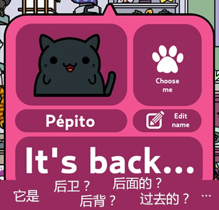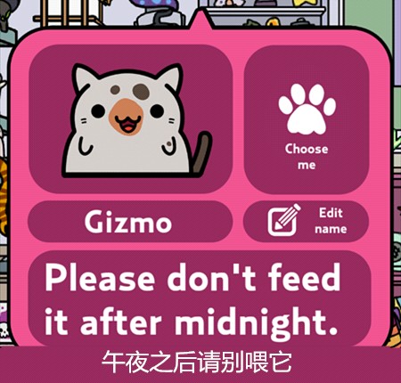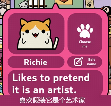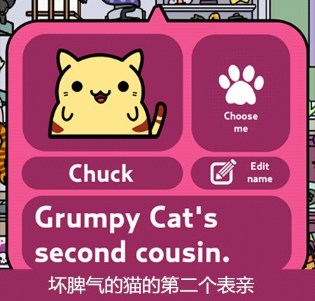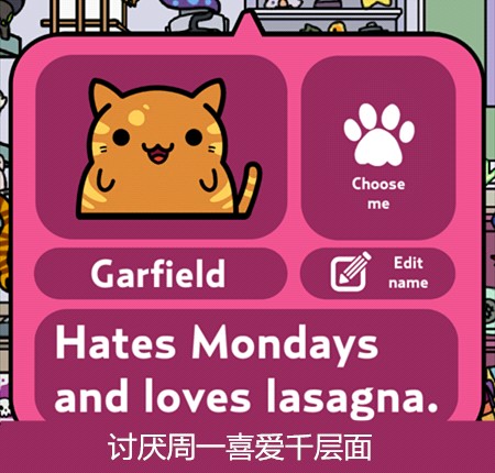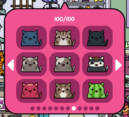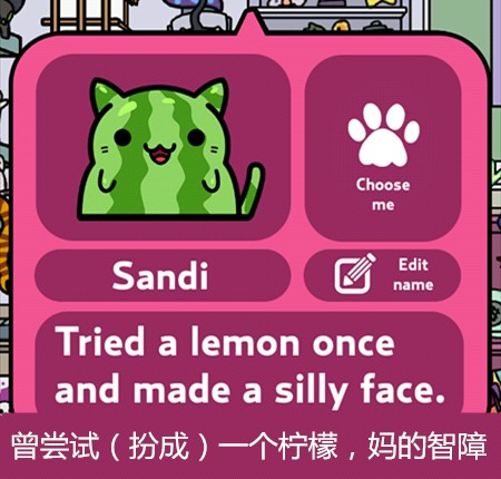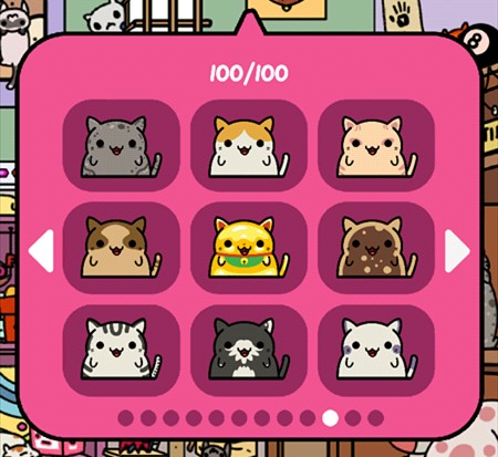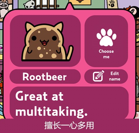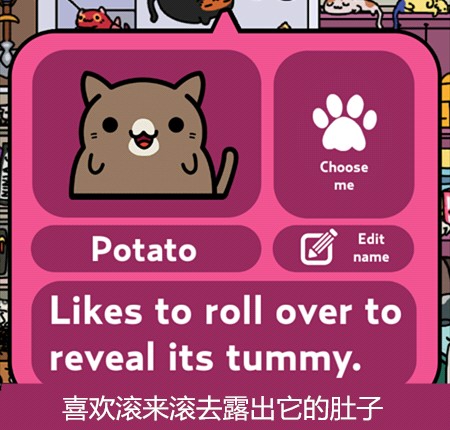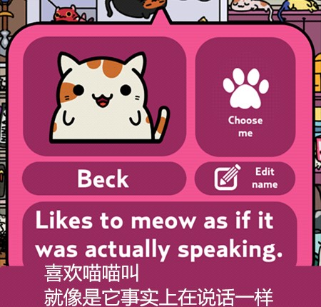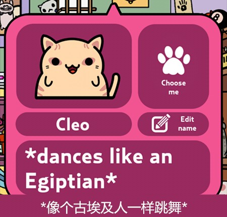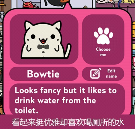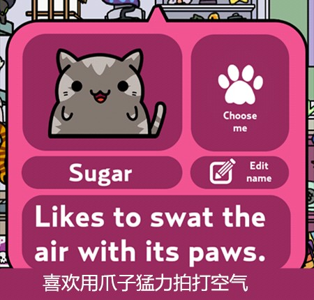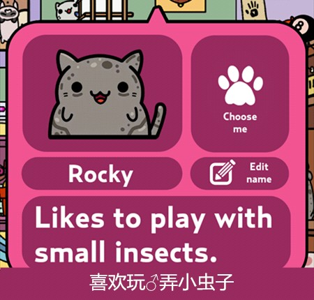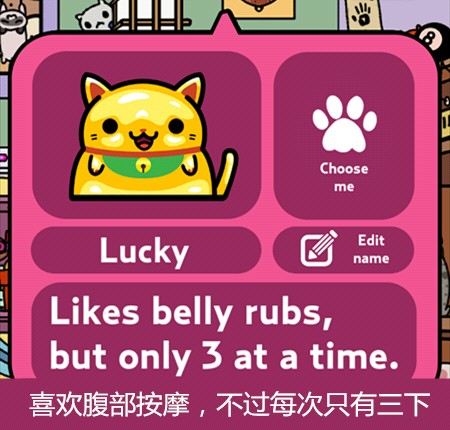 游戏主要玩法就是让猫咪带回东西来收集它们,再通过赚来的钱买新的猫咪,当然也可以在服装小店买装饰品给猫咪穿戴~通过喂食、抚摸增长猫咪的心情(左上角)有几率让它带回更好的东西更多的钱哦~它出门的时候还可以点击右下角玩点泡泡游戏赚点金币