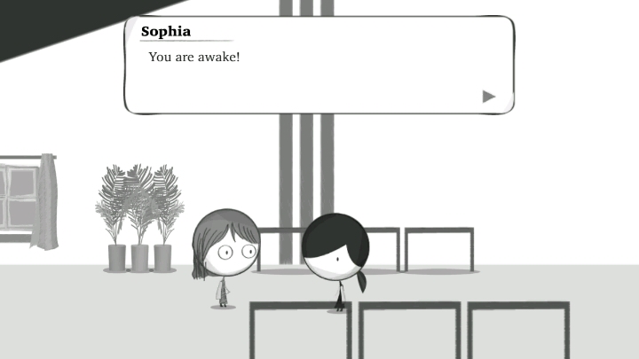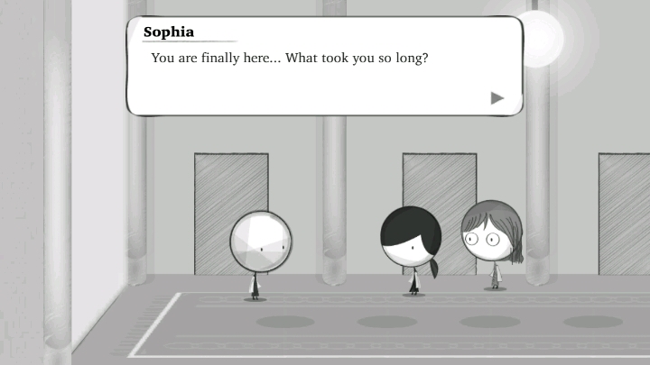 游戏的画风比较……简洁~不过bgm都挺不错的,都很应景也有点空灵~剧情发展到我玩的地方大概是要正式开始了~