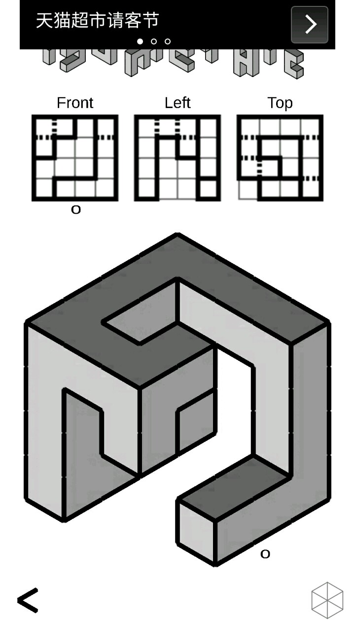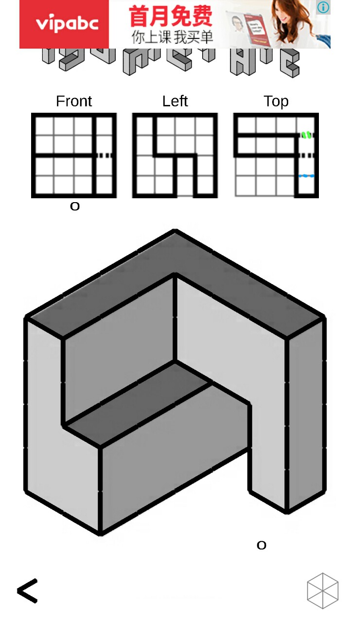 这关也算有个bug吧。我是把正图坐下的正方体补充出来,3线和你刚好不一样,为什么不对?按图形来说应该是对的!