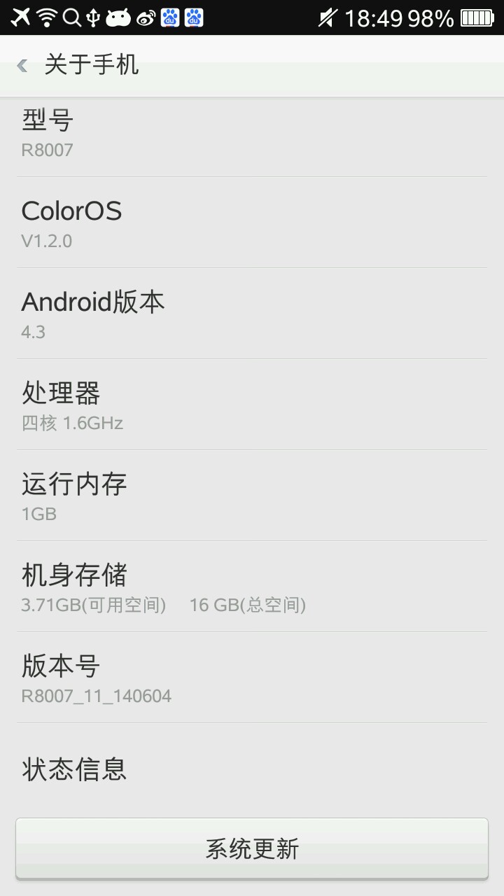 我的2G运行内存,16G机身内存,八核