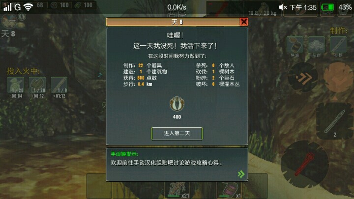 一个字(农民)好像是2个字自己找个狗洞(像列车一样的地方)1天打树,打石头,打根筋做菜地,2天做壁炉,做菜地,收菜到5天做保鲜柜,一直循环,后期坚持不住时做睡袋,就这么简单粗暴这就是为什么蒙古游牧民族没有中原农民生活跟舒适了
