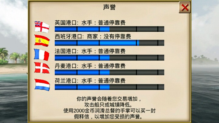 继续上楼没讲完的 Ⅲ这游戏除了出海打仗外,另一个很主要的内容就是交易,从游戏名就可以知道。地图上有很多港口,到后面还可以开地图,到时港口更多,你可以找地图上找到绿色的商品的港口中低价买入该商品,再到高价买卖该商品的地方卖掉,以此赚钱,而且这些交易还影响你在各国港口的声誉,当然是声誉越高越好,此外有时你在地图上遇到诸如某国商船在此航行和某国商船遇到海贼或你去侵占城镇等等事件,你的做法也会影响声誉。