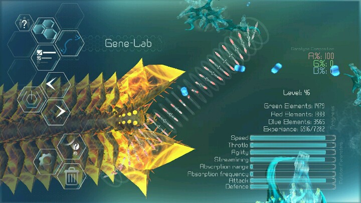 升级后,DNA上有一个会变成白色(图1),如果纯加攻击,也就是红色细胞(图2),之后DNA上那个白色的就会变成红色(图3)。所以等到了满级,也就是50级,然后DNA也会在50级时进行最后一次升级,这时如果像图2这样,就能变成最终形态,当然…这些现在只是预测,还是要等我到了满级后才能知道我的预测是不是正确的