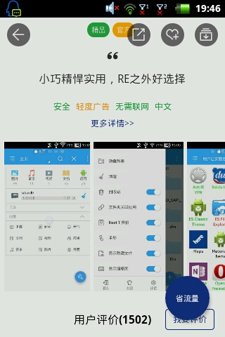 看到ES的软件介绍我很生气,醒目的几个大字(小巧精悍RE之外好选择)这不是明摆着拆ES的台吗?作为ES的老用户我深感不平,ES的界面功能好就不用说了,虽然有广告(毕竟研发软件要钱况且是免费软件),自己想看就看,不想看就不看,非常个性化。希望编辑能够正视,虽然只是字面上的差异。