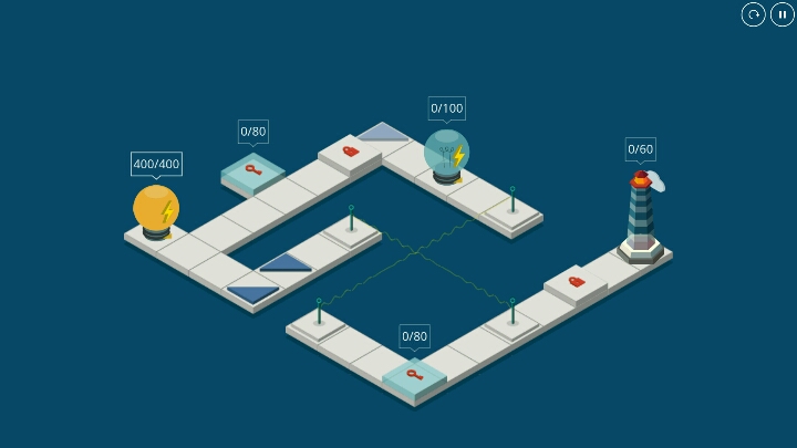 《灯塔》,一款画风简洁的休闲益智游戏~玩家要做的很简单,通过铺设合适的路径以及适时的点击灯泡输电,点亮灯塔。