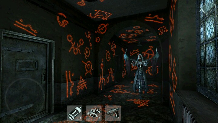♪在设计里把模拟摇杆调出来,可同时自控、点触走的2种操作方法;还有重力感应功能☞作用〖可以斜视,躲在门里,用这功能瞧瞧外面〗PC逃生即视感,这些设计真心赞。