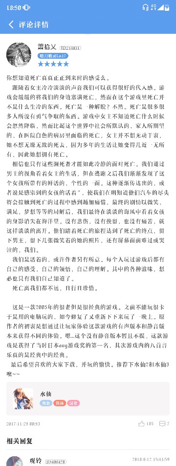 这是一款2005年的很老但是很经典的游戏。之前看应用汇上不能玩很卡于是用的电脑玩的,如今修复了又重新下下来玩了一晚上。原作者的初衷是想通过让玩家体验这款游戏的有声版本和静音版本来获得不同的体验。嗯...汇汇这个没有静音版本暂且不提。这款游戏是获得了当时日本avg游戏奖的第一名,其次游戏内的八首音乐真的是经典中的经典。