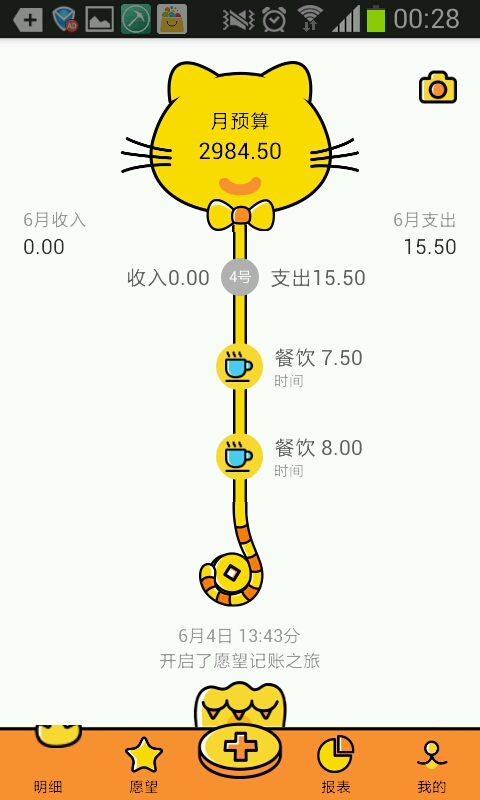 回归正题:app主要就是记下自己的生活支出与收入,并且可以许下愿望,努力去实现愿望
