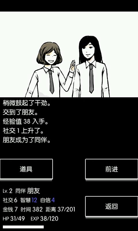 游戏不算太难,只要掌握技巧基本上不会死。主角进入茉莉的梦来唤醒在梦里逃避现实的茉莉。构思很棒,先点个赞!第一部主要讲了主角的童年,买了机器人,收养了焦丸,和茉莉成为玩伴。这一关出现的很多敌都是我们小时候害怕的,蜜蜂啊,数学啊,高年级之类的。要注意返回,不然40步都到不了。我个人最喜欢第二部,讲了茉莉的父母离婚,茉莉伤心地离家出走。这一部的音乐很好听![补充下,加负状态的道具可以舍弃,我当时没看见藏在下面的舍弃选项,还傻乎乎的抗着一堆破烂等着它们坏掉(´・_・`)]第三部是茉莉的中学生活,看见函数和孔子顿时就呵呵哒了( ´_ゝ`)。开始的同伴是朋友,这个阶段不要晃,朋友很靠不住,还有各种同学给你加负状态。往后走会碰到望实,是个很奇葩的妹子[但至少很靠谱吧]。第四部茉莉成年参加了工作,讲了DPD的研发。这一关不难,但要靠技巧,前期攒钱,后期升级,打boss之前要机械转变[其实最后十几步左右转变就差不多了,别跟给你加负状态的敌打,跑就行了]。最后一部,黄泉。这一部真的挺难,运气和经验都很重要。[我其实在想茉莉当时是咋从梦里跑到黄泉的啊~]前期1~20步不用多晃,20~30会有深渊。这时候只要有2级,没有亡者的状态,能蹿上两级,还能拿必杀。70步左右也有深渊,70~75会碰到焦丸。前期最好的必杀是灯火,冥想和切割,还有一个不错的负状态,苦行[削力,经验翻倍。]。100步的时候茉莉对火柴,推荐火车+火莲之拳。不用吝啬Hp,打完就满血回到60步。[这种打法火柴不给你丢减力的道具,只会自己加点血。八级左右三拳就搞定。三发切割+火车也也差不多,但火莲之拳打完就自动满血了,不会浪费]最后的boss要用正拳,但好像打过一次普通结局才能打出这个必杀技。第五部最恶心的负状态是死灵和饿鬼,如果真中了这个,别吝啬7点时间了,赶紧用冥想吧。希望只是试炼的时候用一下,打怪不需要,必杀需要就用吧,尤其是灯火。还有,提醒一下,每一关开头靠什么打怪,打boss就要靠什么。