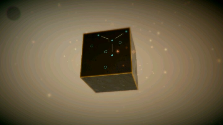 ③之后,点击比较亮的地方,出现一个球体,周围有几个几何体,点击发光的几何体,进入解锁界面。