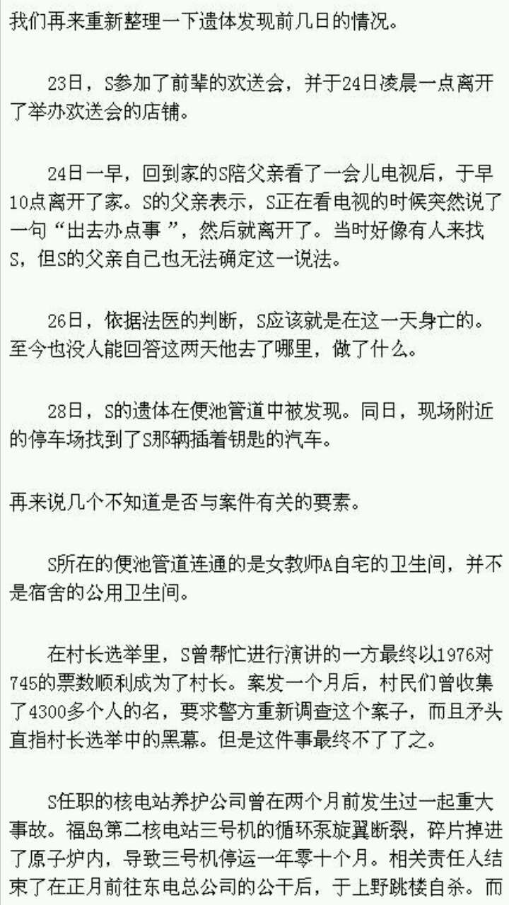 第二案:福岛女教员便池管道死亡案-感觉有心里阴影了