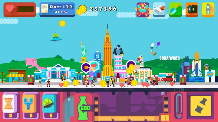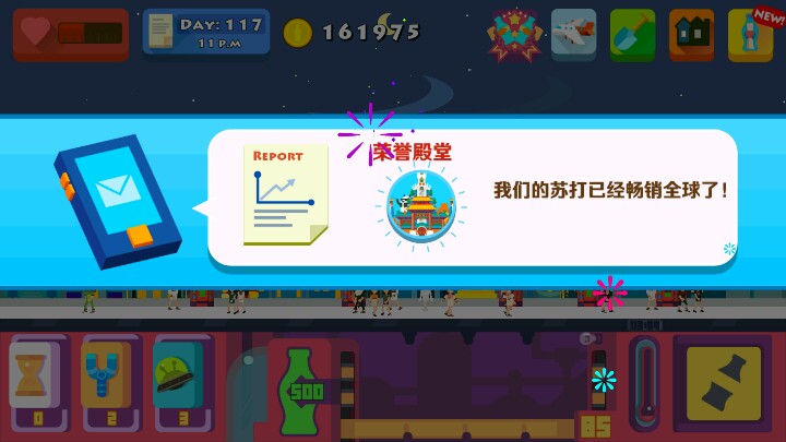 苏打世界玩了差不多一个星期 刚开始接触是因为觉得画风很喜欢 然后看评论也说很好玩 就抱着试试看的角度去下载 然后开始玩的时候觉得还不错 然后就一直玩一直玩 没有用修改器去改没有利用bug去玩 因为我觉得自己真正的去享受这个游戏的过程才是玩这个游戏的意义吧 安利给身边的朋友 结果朋友们也一直在玩 这就是好游戏吧 而且 广告的插入也没有其他游戏那么生硬 我觉得这一点很值得其他游戏来借鉴 同样是打广告 那为什么不用让别人不觉得那么排斥的方法去做呢?? 你们说是吧 然后 也没什么经验可谈 就是告诉你们一下 刚开始玩的话 就是升级苏打水的价钱多一些 我觉得这样赚钱也能快一些 但也不要一味地去升级 也要经常帮助那些人实现他们的愿望 就结合一下吧 每开一个城市 他会给你奖励 到时候 你就先用给的钱来升级苏打水的价格 其他的再自己权衡一下 如果你的售卖箱总空 那你就升级这个 如果你的库存不够 那你就升级这个 如果你嫌每次制造苏打水次数太多 你就升级这个 总而言之就是随心而定 但我觉得放在首位的 一定要是苏打水的价格 其他的 也没什么了 嗯 祝各位游戏愉快 然后下面两楼给你们放所有建筑的最高级别 大家欣赏一下即可 不管怎么说 这真的是一个超棒的游戏 值得去玩
