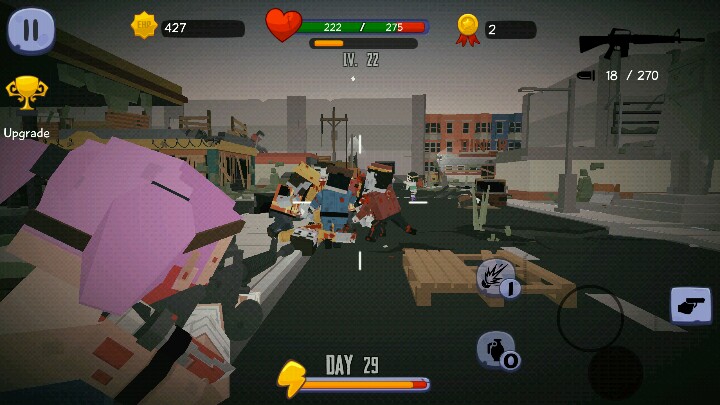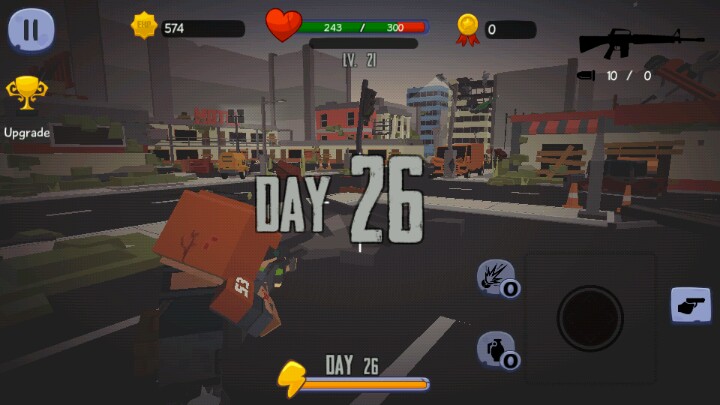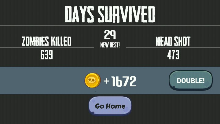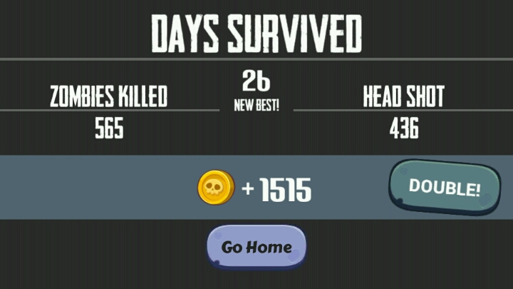其实这游戏还是可以推荐一下的,虽然只有一张图,但是场景丰富度倒是还可以。场景没法互动。+动作流畅,射击手感比mini zombie(忘了叫啥名了,类似的一个游戏)强多了+不算太坑钱,角色可以抽,初始有120钻石够买两个角色,我就买个两个妹子( ・ิω・ิ)+升级可以用来回血回弹药,经验能买回手雷和诱饵,这样可以撑更久,喜欢这个设定+有一定的挑战,有一小点技巧,主要是,特别爽就行了-僵尸生命随天数增加太多,一直升级伤害也打不过去,手枪到最后就是鸡肋-双击跑步一是速度没法升级,二是感觉没多快-想爽一爽还不错,但是毕竟也就是无尽,修改了金币之后也就没什么玩头了总的来说,挺满意的一部小游戏,玩着也挺休闲,大作玩多了益智游戏玩累了可以来玩玩这个。