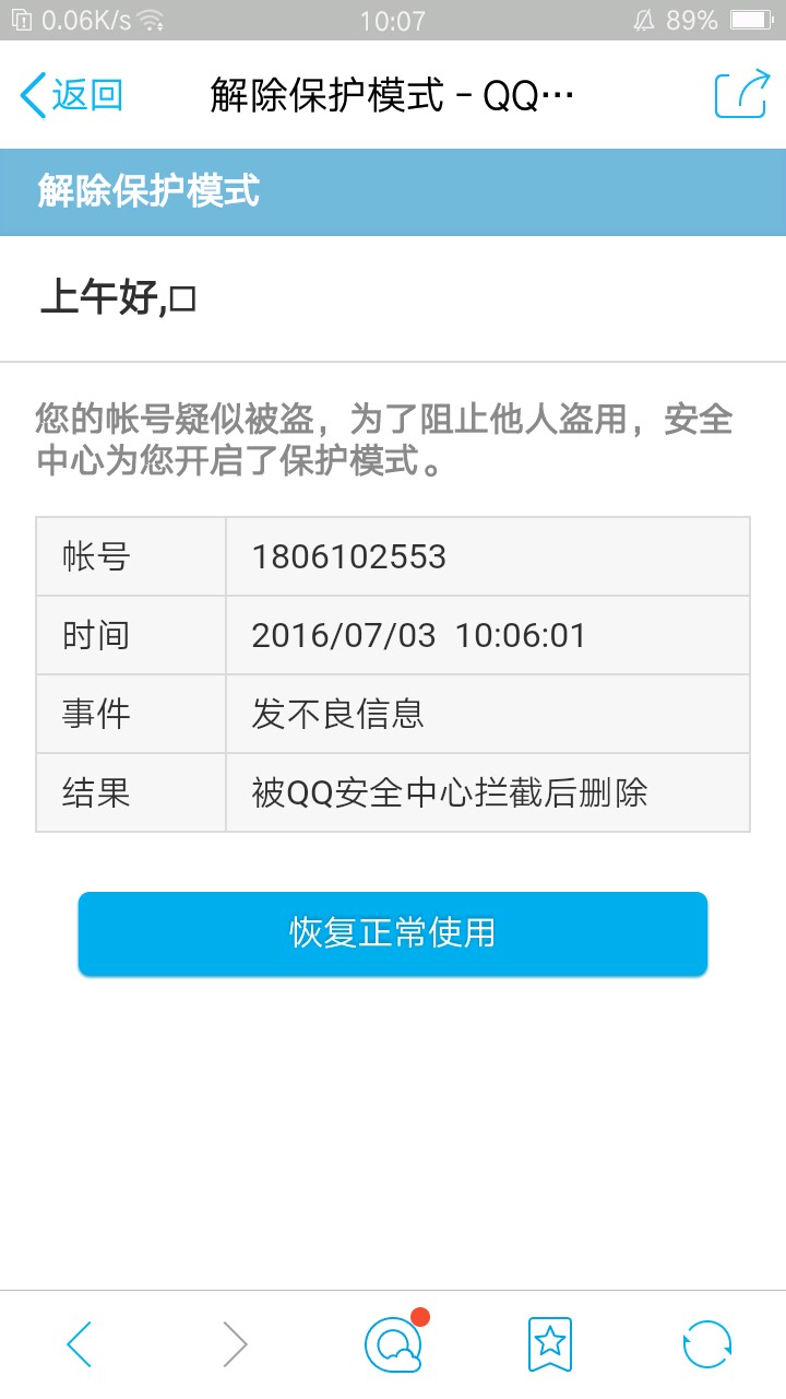 今天一大早起来发现登不上QQ了,然后看到被举报,请给一个合理的说法