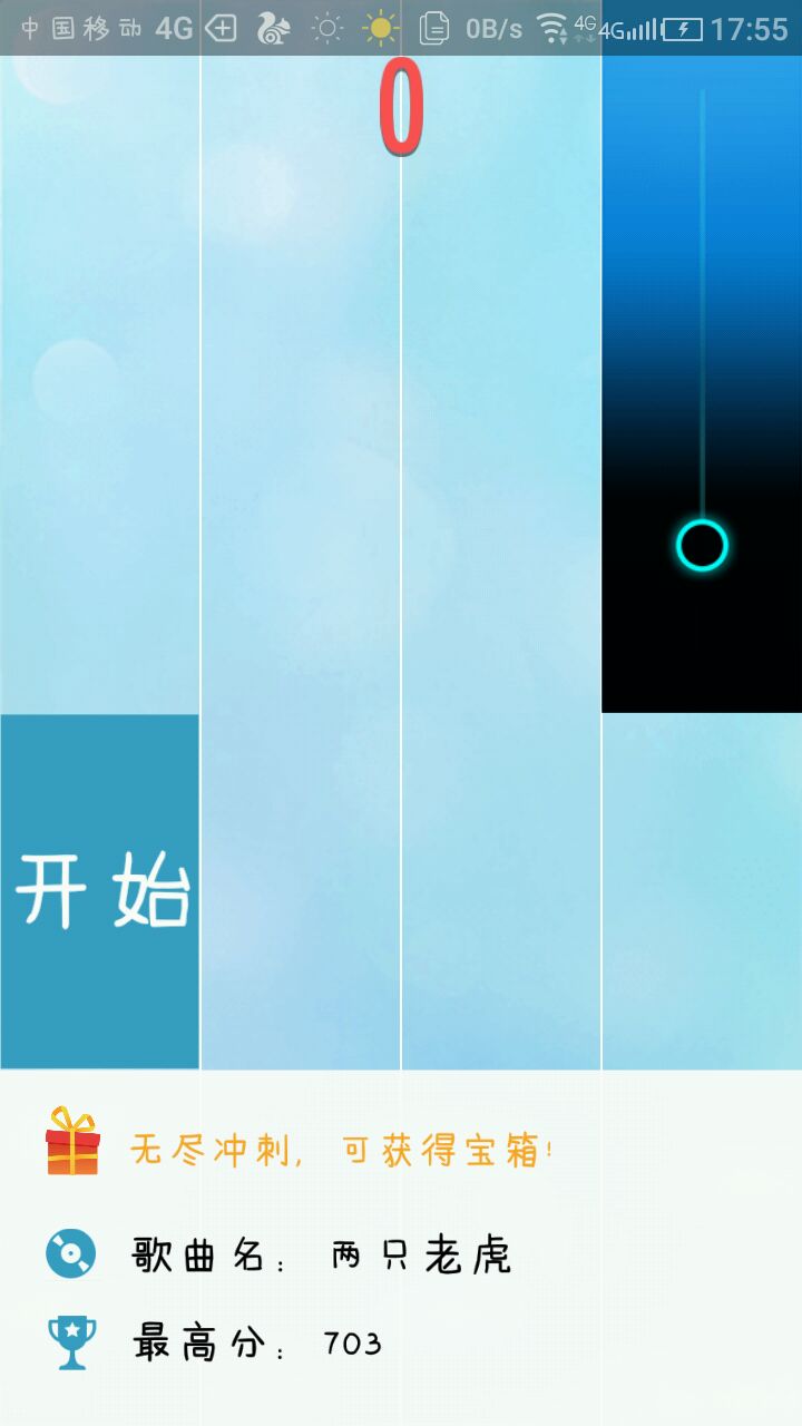 《1.小星星》 ★64 ★★125 ★★★186 ✿ 256 ✿ ✿ 380 ✿ ✿ ✿ 570 评价:难度★☆☆☆☆ 短块个数多 起始速度中等偏慢 so easy!(评价仅为楼主个人想法,不与任何人有关)