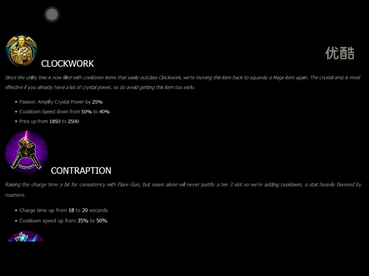 cd效果增加,回蓝改为4/s,最大生命值增到200【图片】发条:40%冷却,但可以增强25%水晶比例,价格升至2500