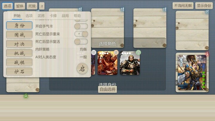 再补充一点,电脑好像知道玩家要展示的牌和身份一样,反正张嶷的抚戎、周瑜的反间成功率低到不行;内奸不管怎么配合,存活玩家身份未判定,电脑就知道内奸身份了