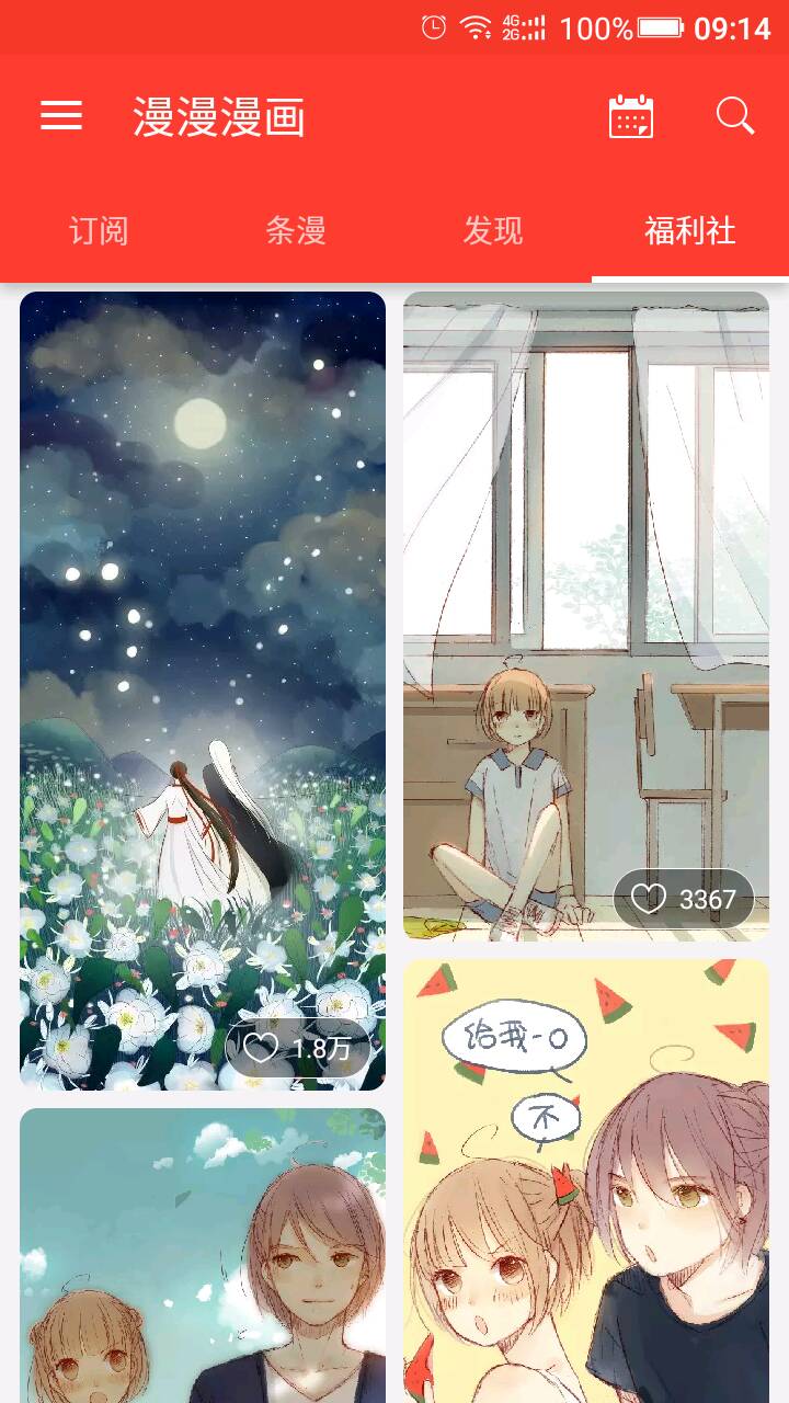 漫漫漫画算是非常不错的看漫画软件了 虽然作品不多 但画风都很好 在评论区中鲜少有看见说什么“赞我上热门”“今天我生日集赞”等跟漫画作品无关的评论 并且会很积极的吐槽啊 猜想啊等等福利社应该是作者大大画的同人图 可供下载 类型搜索在搜索那一块嗯 漫漫漫画是一部很好的看漫画软件