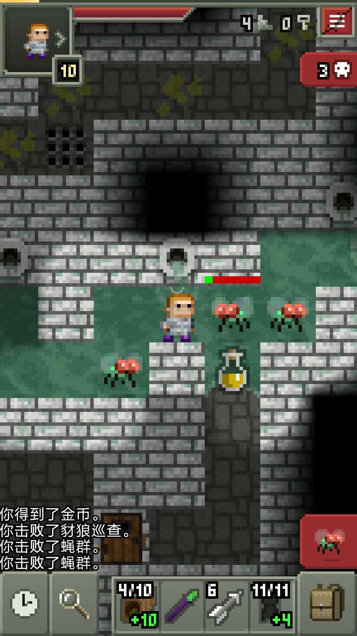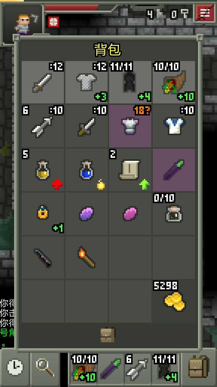 首先确保在1-4层得到丰饶之角。1-4层有很多苍蝇,可以刷到治疗药,前期把食物都喂给角,不用怕极度饥饿,血掉的多了就可以吃治疗药喝露水踩绿种睡觉用睡眠卷轴。角色升到5级以上,力量12,至少穿上皮甲,并且角升到+3以后,在3或4层先找到只有一个门的房间守着门口刷怪。