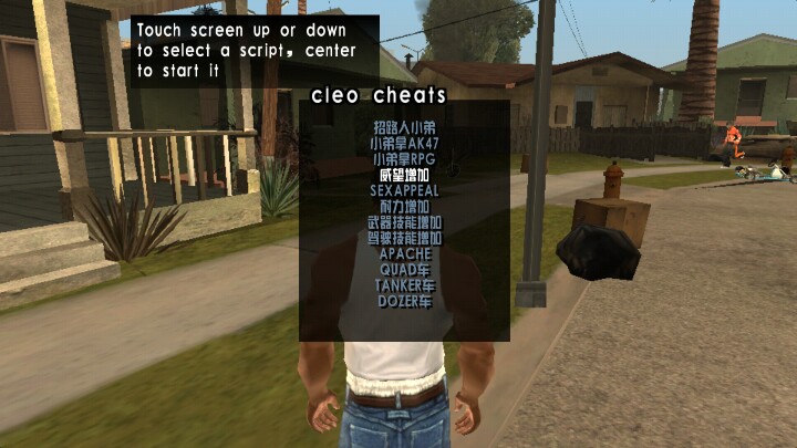 这个版本应该是目前安卓端最完善的了,而且运行要求也不高,自带作弊器。在游戏页面中较快下滑就会出现两个英文选项,点击屏幕上下就是选择,点中间可以确定,确定后的选项就是中文的了,不过这时点击就是直接确定了,然后会反回游戏。我不知道为什么有人说修改汽车不能用,但我这里能用,第一个英文就是。可惜我的手机截图的话会截出地图,所以就没有图了,有空我试着发图