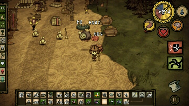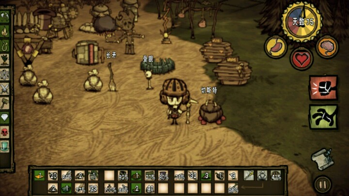 楼主春天开局,与pc版不同的地方,首先来说天气。手机版大大降低了游戏难度,这点从天气就可以看出来。pc版春天基本天天都是下大雨,手机版则是有一天小雨有一天没雨,大雨很少,这大大的提高了玩家的san值,前期不会过早碰到影怪【顺便吐槽一下手机版的打怪走位系统,这游戏走位不像电脑一样操作简单,基本就是打怪时候不小心点到其他物品上人物就不动了,会被打掉血。吐槽】