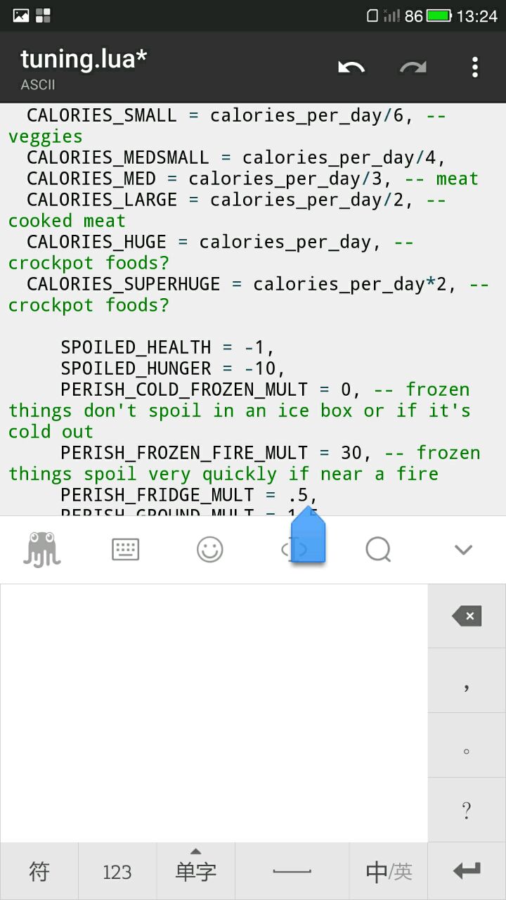 完美降级版 去除数据包验证 安卓4.3+opengl自己去修改数据包吧 XX变态(๑•̀ㅂ•́)و✧/解压后的数据包目录/DLC0001/scripts/tuning.lua 主要修改这个tuning.lua 大部分全部能修改出来楼下主程序地址 不带数据包把自己的数据包备份好就行了 没有数据包的,可以百度下,也可以直接应用汇安装好 然后找到 sdcard/Android/obb/com.kleientertainment.doNotStarvePocket这里的数据包ps.覆盖安装,如果出现签名问题,需要卸载的卸载前记得把数据包拉出来 不然会被删掉