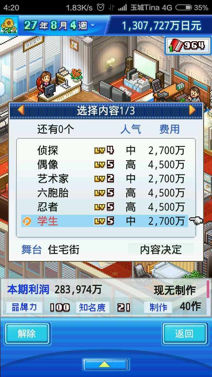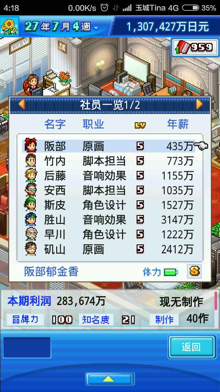 第一次接触这种游戏,感觉还不错。从今天上午开始玩,玩了好几个小时。这是我自己玩出来的数据,可能不是最好的。嗯。名字什么的就不要去管他了。舞台开启了百分之九十,至于还有什么就不知道了。关于这个游戏,我说几点。一,角色加点的时候,不要分散加点,要加就只加一种属性,这样才有更多机会上榜。二,鉴于游戏金钱可以为负数,所以前期你可以不用攒钱,反正游戏不会让你game over。三,到游戏后期,那个什么机器人产钱一千万,到时候你就会发现什么用都没有,一千万根本就是小数目。额……就这么多吧……凌晨四点,想不出来了。有什么问题问吧……如果有的话……虽然我也不是什么高手……谢谢……