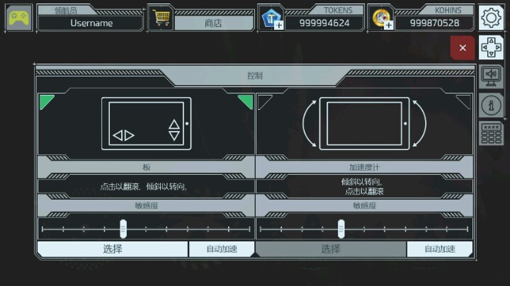 右边与触屏模式对应的当然就是重力感应啦,不过在重力感应模式下建议调低灵敏度,不然你就等着原地转圈圈吧!!QAQ