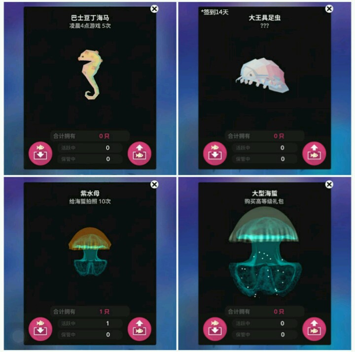 3.签到每天得20宝石,到时间自动解锁对应生物