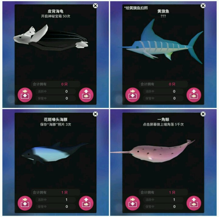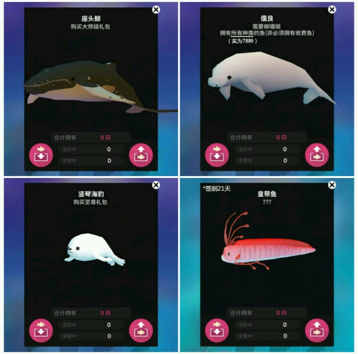 1.版本更新后新增4种鱼,而儒艮还是获得78种鱼解锁,并非所有非收费鱼