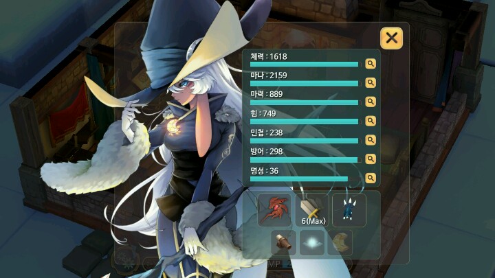 我一直带着这个法杖(注意看武器) 哎 过时了 还有我糟糕的属性 我就知道第一个和第二个是生命值和魔法值 其它都不认识 为什么那个月亮又不亮了