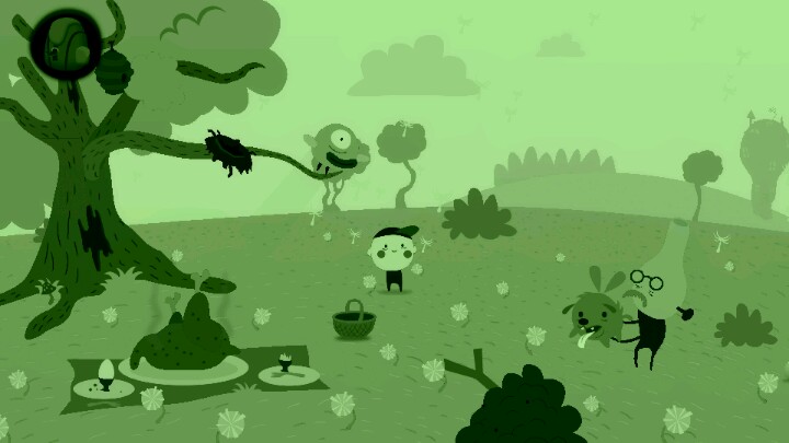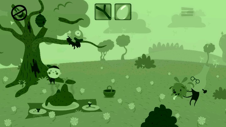 如图2,点击草丛获得球,此时丢给他,有只要孵蛋的鸟会来抢球。
