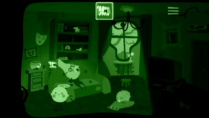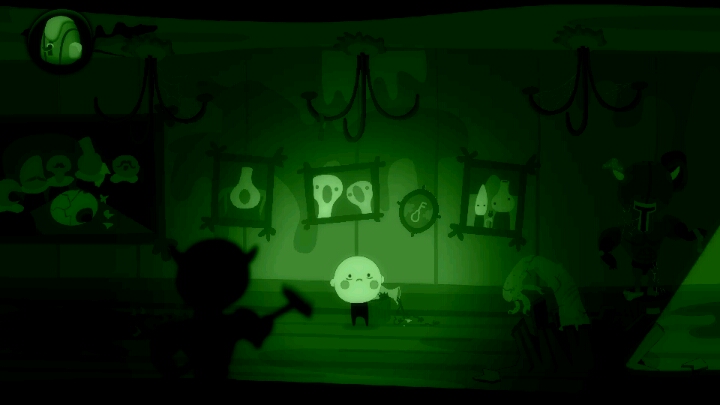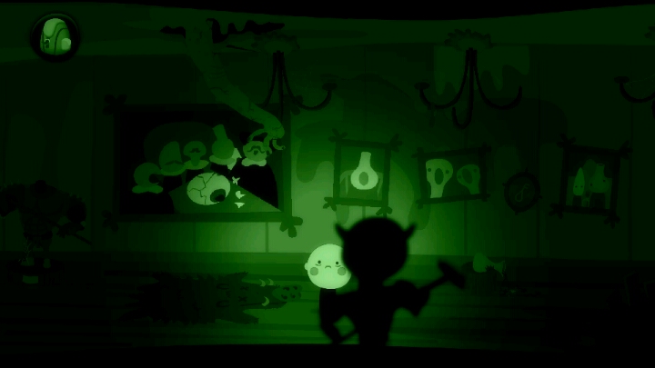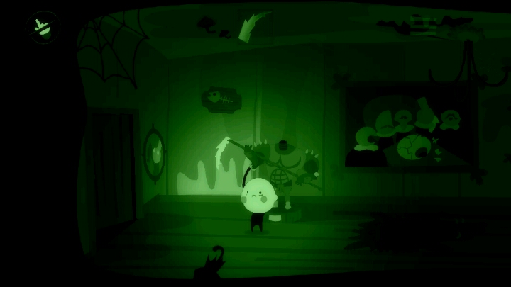第三个场景,左边有只怪手,别怕,主角可以抛脑袋,点击天花板主角会到吊灯上,一路向左避开地面上的几只怪手。直到天花板上怪手出现,把他扔到地面。