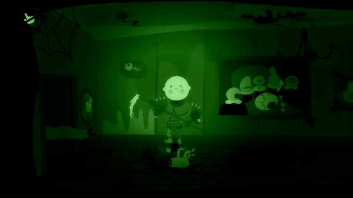 首先一直往左,蜘蛛落下挡住主角去路,然后一直往右,在床边捡到扫把。但主角胆小,不敢用它赶走蜘蛛。