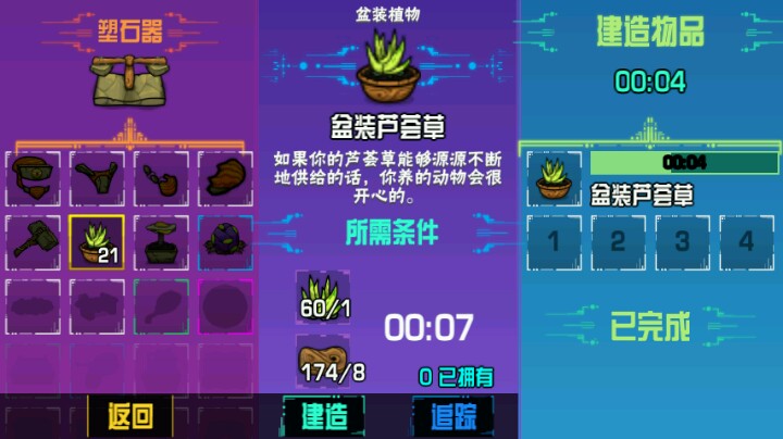 所有装备工具均来源于那个航空船,从制造第一个草料制作工具开始,都是按照任务图纸一步步建造的,那种RPG主支线体现很明显!