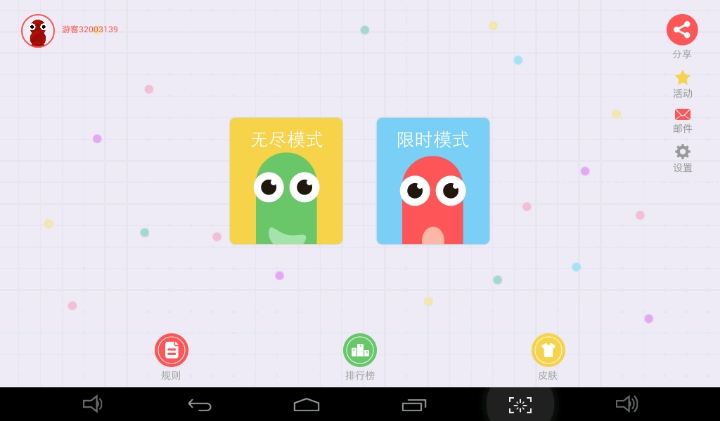 2:限时模式,玩家可以在五分钟内杀死最多的蛇,拿去更多的分,登上排行榜,然后~~就没有啦-.-