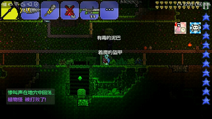 日食就是等´_>`看人品´_>`打世花可以造个大点的平台,配巨兽鲨跟蘑菇矛,大血药过