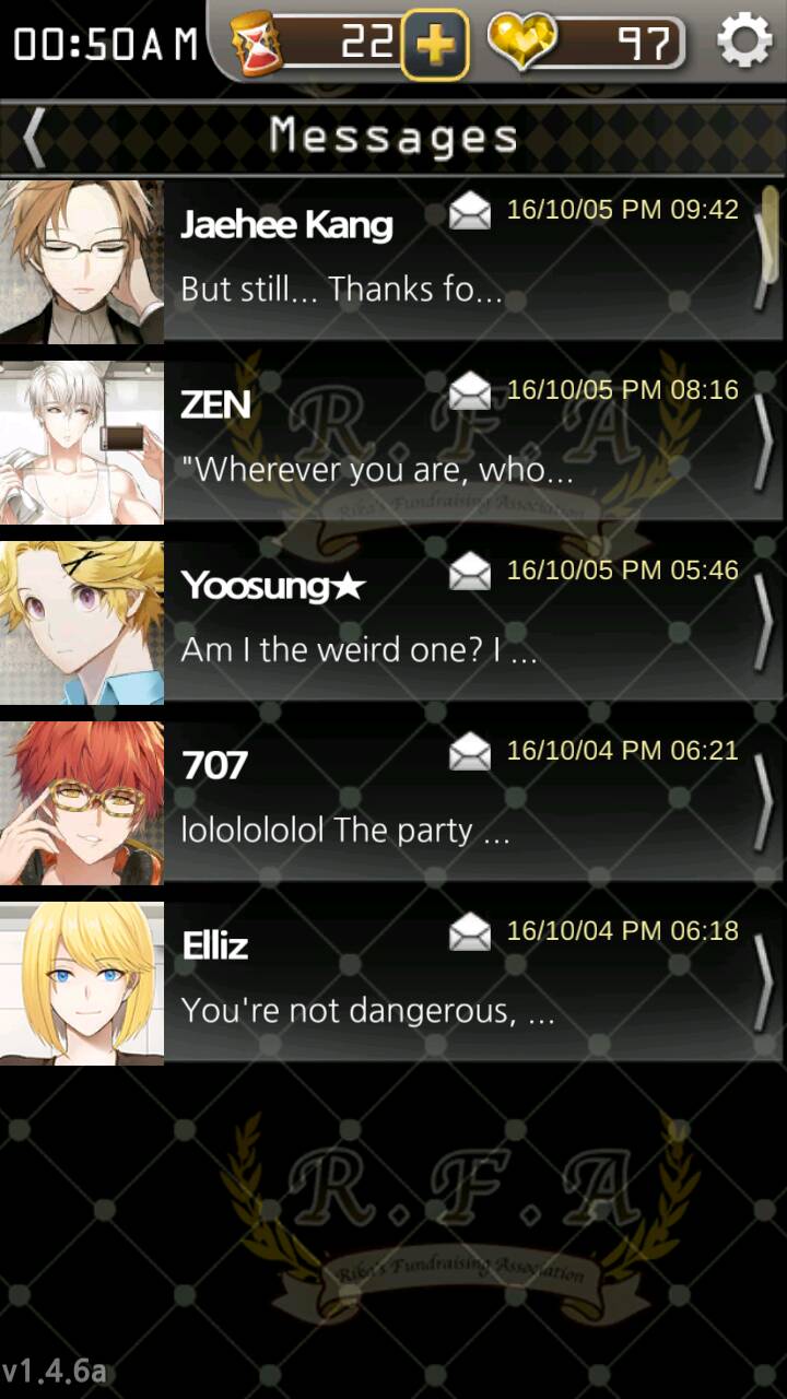 剧情一开始是说主人公突然接到无名的信息说他捡到一部手机里面有地址想主人公到那个地址看看(这太恐怖了是我的话一定会无视吧) 之后主人公到了那里一栋楼 之后主人公进去应该是使用了那里的电脑导致她进入了一个陌生的群组 五位男生都被吓着了因为这群组只有6个人使用不会有人能进得到来 之后他们通知BOSS 来了解情况 就像我前面所说的 那女的原本是有份负责举办派对(那派对2年1次的,而且是慈善派对) 可是那女的(RIKA)去世了所以这一年半他们也没在策划新一届的派对从此不了了之