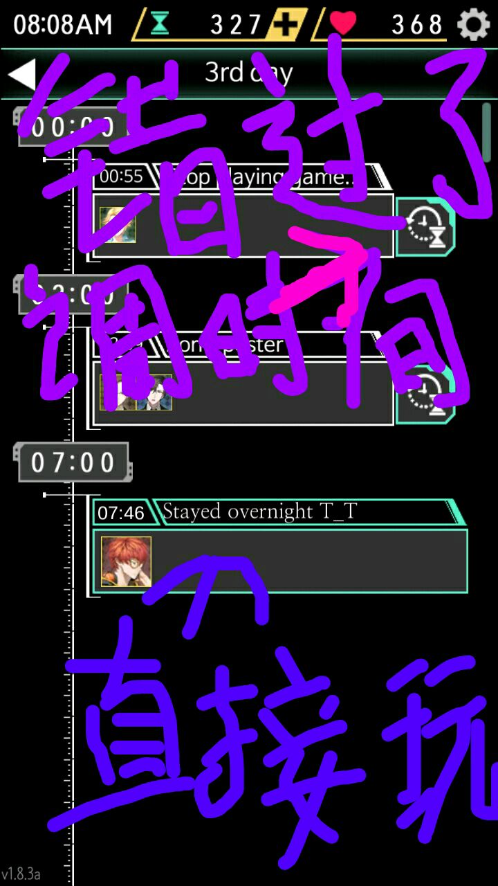 这游戏是根据现实中的时间走的,所以为了攻略。。。 我拼了!