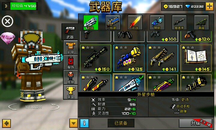 玩了差不多两个小时,我的装备就这些了,我还买了些钻石和金币。游戏名字是3d像素射击,可以在应用汇里找到下载。