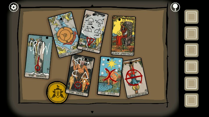 最后则是诡异程度。这作不像以前那样突然蹦出个黑影吓你半死,而是趋向于一种叙述。毕竟定位是描述锈湖与锈湖旅馆的事情。但是剧情也是相当诡异。结合着塔罗牌来进行剧情推动,也是有种神秘感在里面