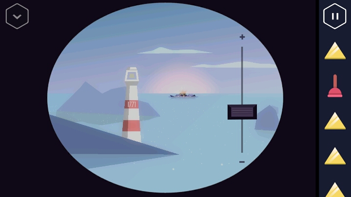 来到二楼卧室,把鱼骨头扔到地上,小猫会跳下来,我们就可以拿走椅子上的镜头了。把镜头装到望远镜上就可以使用了。 进入望远镜视角,发现沉没的邮轮,但重点是旁边灯塔上的1771四个数字。在这个小键盘上输入1771,注意这里的按键已经错位,需要先知道1和7在哪。实质输入7667。接着保险柜打开,出现几个齿轮,我们只要把齿轮上的三角形一一连接就行了,如图。出现指纹识别,当然你的没用。