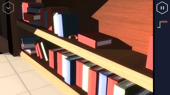 此时环视房间,你看到墙上有一幅画,点开发现一个保险柜,把刻度都调到同一直线上后就可以打开了。方法如图。打开有一个面板,发现少一个部件,这时候往右边的楼梯走,来到书房。在书架上可以找到一个U型磁铁。这时大家就能想到磁铁可以吸钥匙,回到鱼缸那,吸钥匙。从水槽里取出钥匙。 接着从这个楼梯上二楼,会有一堵门,用水缸里那把钥匙开门就行了。从走廊抽屉里可以得到一个零件。 然后进入左边的房间,在留声机旁找到一张黑胶唱片,放上去后再把把手插入,旋转到红色刻度区域。得到螺丝刀。点击桌面看到一张纸条。看来她是想搞事情(ಡωಡ) 然后进入二楼的右边房间,是一间浴室,在洗手池上面打开玻璃门。又可以找到一个三角零件。此时打开莲蓬头留意墙上有一个淡淡的时间。旁边瓶子上有三斜杠图案,后面都会用到。