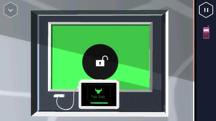 连好后会出现一面玻璃,通过点击击碎玻璃,看到一个数字键盘,先不管。