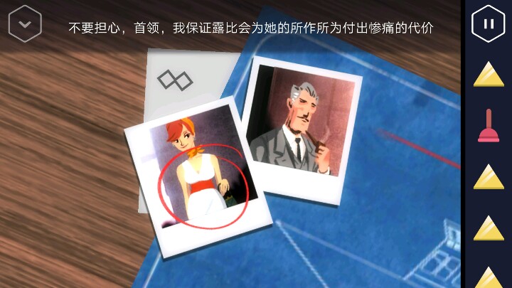开门后看见花瓶,点击后有机关。墙壁上出现了一个控制台, 你可以得到一个把手。控制台旁边有六个按钮,需全部按灭。 规则就是按下亮着的蓝色按钮会点亮一个红色,然后把红色再按一次就行了。此时控制台上出现了一个凹槽,不知道干嘛用的。 所以点出来。看见旁边有一个鱼缸,里面有一个钥匙,但拿不出来。所以往阳台去,可以找到那个间谍,然后那个间谍把你锁在了房间里。你需要解除警报系统。