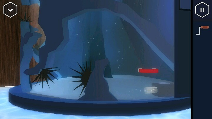 来到"控制面板"房间,对大鱼缸里面的钥匙使用"磁铁",将钥匙勾引到管口(图4)