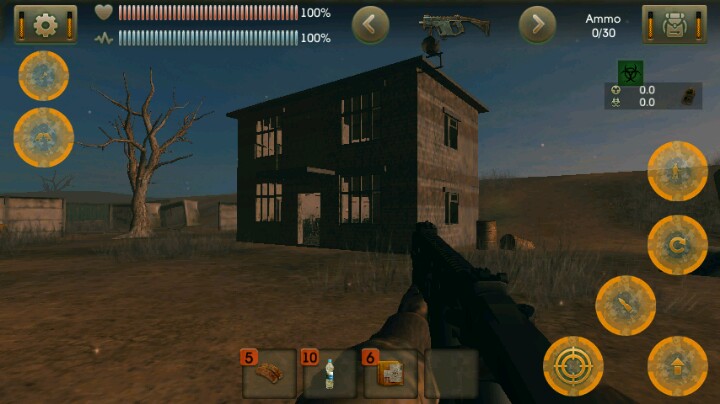 进入游戏后,打开背包装好枪械,药品,返回游戏界面,点击重装子弹,然后前行,到一个有瞭望楼层的NPC地点(如图一),在二楼npc旁边箱子里有一把AK,拿好后装上,桌上有吃得肉饼和喝的水(在npc右边的地下,捡起来就行),以及治疗辐射的药品,还有一个录音机,可切换歌曲!